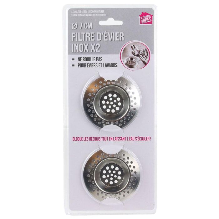 - Set de dos filtros coladores para fregadero muy prácticos. De acero inoxidable.