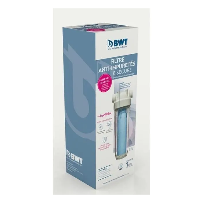 BWT B.SECURE Filtro Antiimpurezas 25µm Antibacteriano - Protege la salud, las tuberías y los equipos del hogar