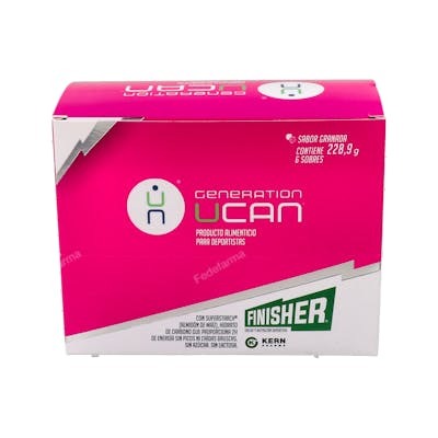 FINISHER Suplemento Deportivo Generation UCAN - Granada y Arándano, Recuperación Muscular, 6 Sobres