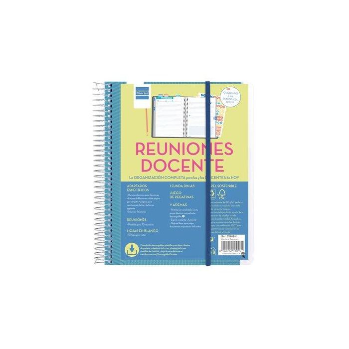 Finocam Libreta de Reuniones Docente Espiral 4º Tapas Personalizables con Papel Reciclado