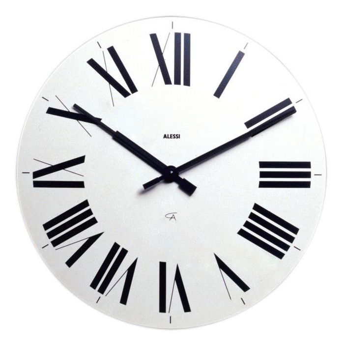 Diseñado por Achille Castiglioni, Pier Giacomo Castiglion. Este reloj para la pared en ABS cuenta con un movimiento al cuarzo. Los números están en romano dandole así un toque más vintage.