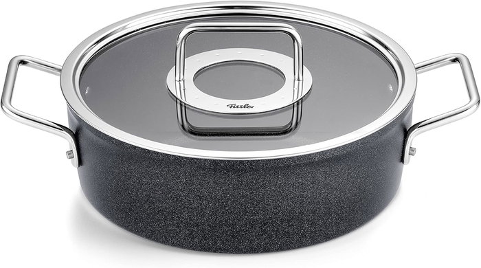Fissler Calidad fabricada en Alemania: los utensilios de cocina de aluminio con revestimiento se han fabricado en Alemania y están hechos de hasta un 60% de aluminio reciclado. Gracias al revestimiento, es especialmente rápido y fácil de limpiar