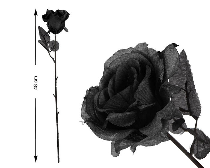 Esta rosa negra de 48 cm es perfecta para dar un toque elegante y lúgubre a tu decoración. úsala en altares de día de los muertos, escenarios de terror o como complemento de disfraces góticos. su diseño sobrio y estilizado la hace ideal para cualquier ambiente oscuro.