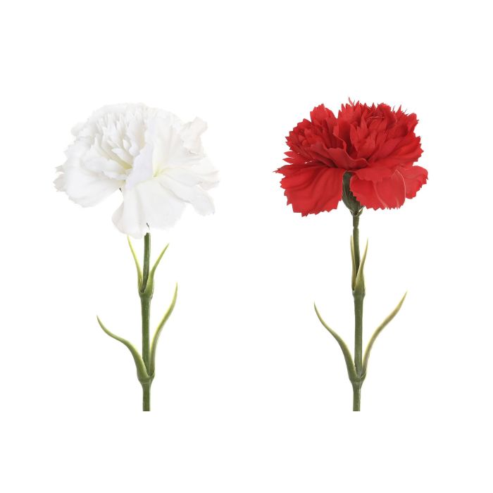 DKD Home Decor Flor Artificial Clavel Rojo Blanco Seda/PE Tacto Real 10x50x10 cm (12 Unidades)