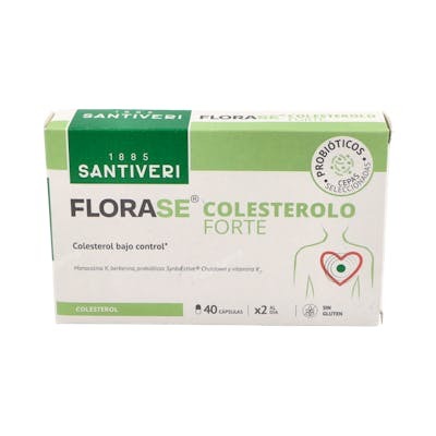 Santiveri Florase Colesterolo Forte 40 Cápsulas | Complemento Cardiovascular con Monacolina K, Berberina, Probióticos y Vitamina K2 | Vegano, Sin Gluten, Sin Lactosa