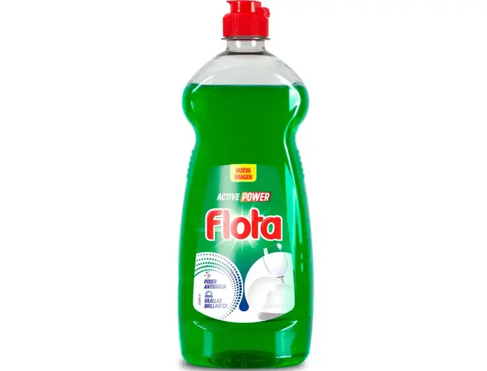 Detergente lavavajillas con fórmula Active Power, diseñado para limpieza profunda. Botella de 750 ml con aroma fresco.