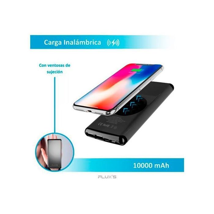 Flux'S Epsilon Cargador Power Bank Con Carga Inalámbrica Qi 10K Mah Negro