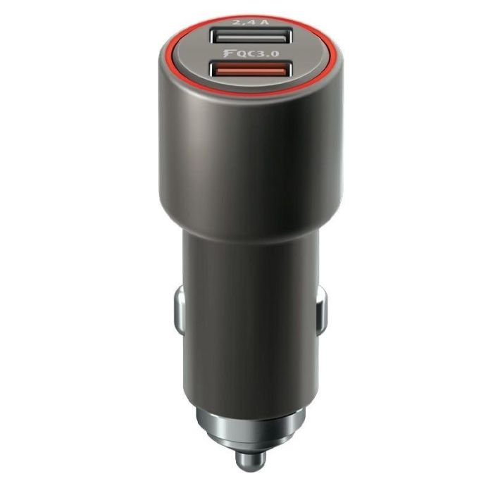 Adaptador de coche Forever con 2 puertos USB de carga rápida. Compatible con la tecnología Quick Charge 3.0 para una carga ultrarrápida de tus dispositivos. Ofrece una potencia total de 30W y una intensidad de 2.4A por puerto, ideal para cargar smartphones, tablets y otros accesorios electrónicos en tu vehículo. Marca: Forever.