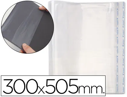 Forralibros de polipropileno de 80 micras con sistema de ajuste adhesivo. Presentación en bolsa. Las medidas de las fundas son abiertas.
