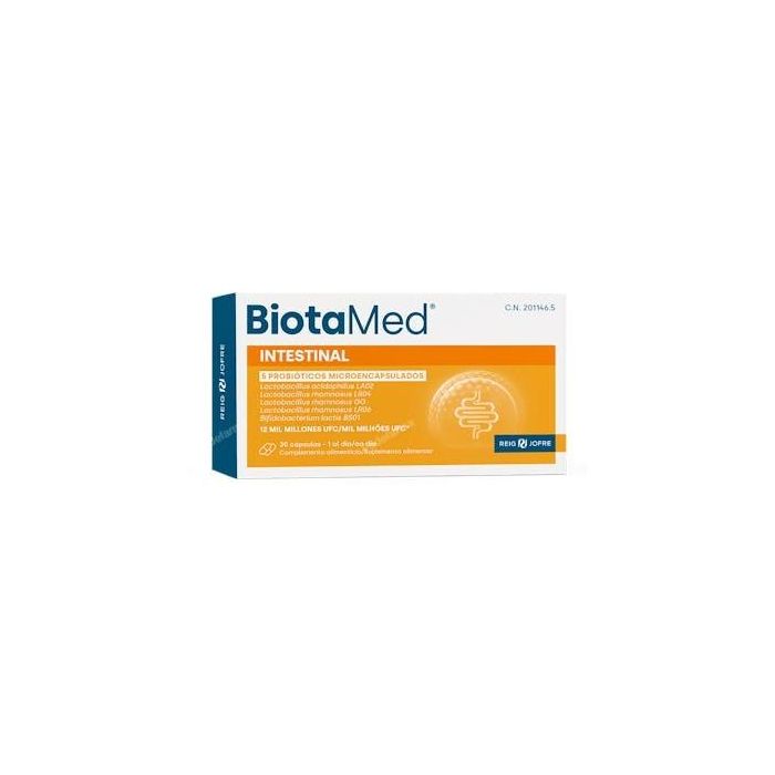 Descubre el poder de Forté Pharma BIOTAMED INTESTINAL, un complemento alimenticio avanzado diseñado para restaurar y mantener un equilibrio saludable en tu flora intestinal. Presentado en 30 cápsulas, cada unidad contiene una combinación única de 5 cepas microencapsuladas, ofreciendo una dosis total de 12 MIL MILLONES UFC (Unidades Formadoras de Colonias) de probióticos de alta calidad.