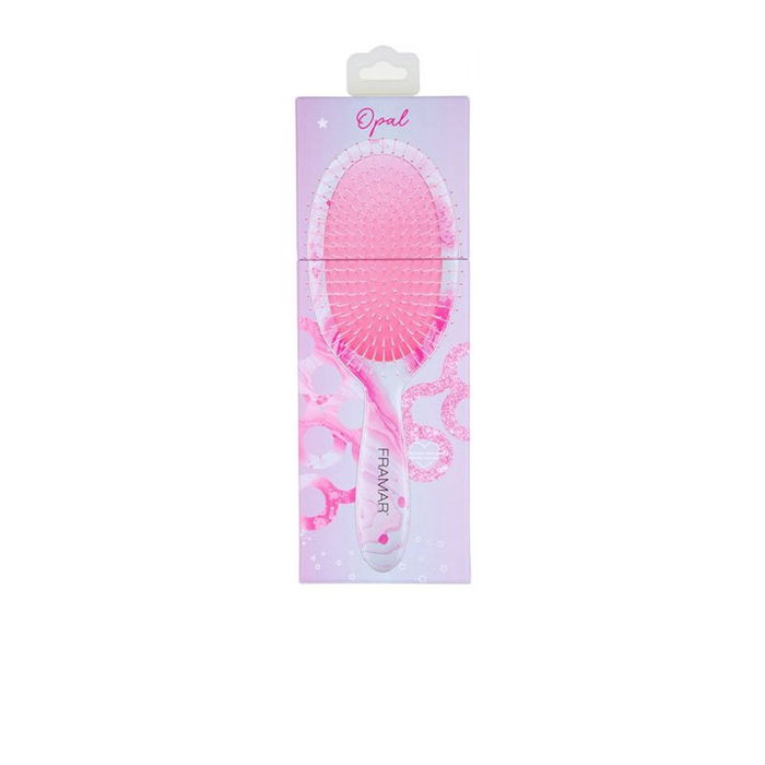 Cepillo para desenredar hecho en una hermosa piedra lunar rosa.