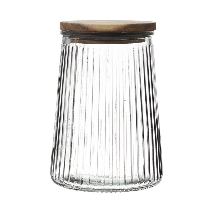 - Este bonito tarro de vidrio con textura acanalada es ideal para almacenar y presentar comida.