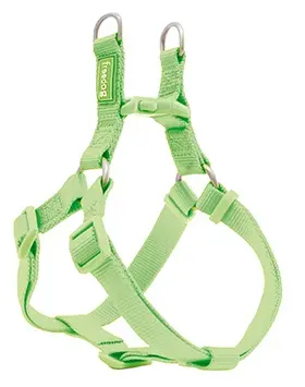 Arnés de nylon Freedog Tipo A, de color verde lima, con ancho de correa de 10 mm y ajustable para perros con perímetro torácico de 20-36 cm. Este arnés de la marca Freedog está fabricado en resistente nylon para paseos cómodos y seguros.