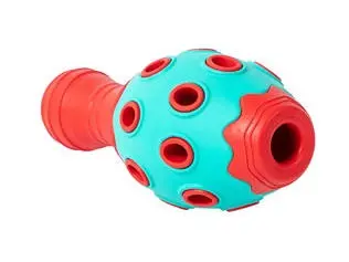 Con unas dimensiones de 6,6 cm de ancho, 6,6 cm de profundidad y 15,3 cm de alto, su tamaño lo hace manejable y atractivo para los perros. Fabricado en goma resistente, está creado para ser duradero y seguro durante las sesiones de juego.