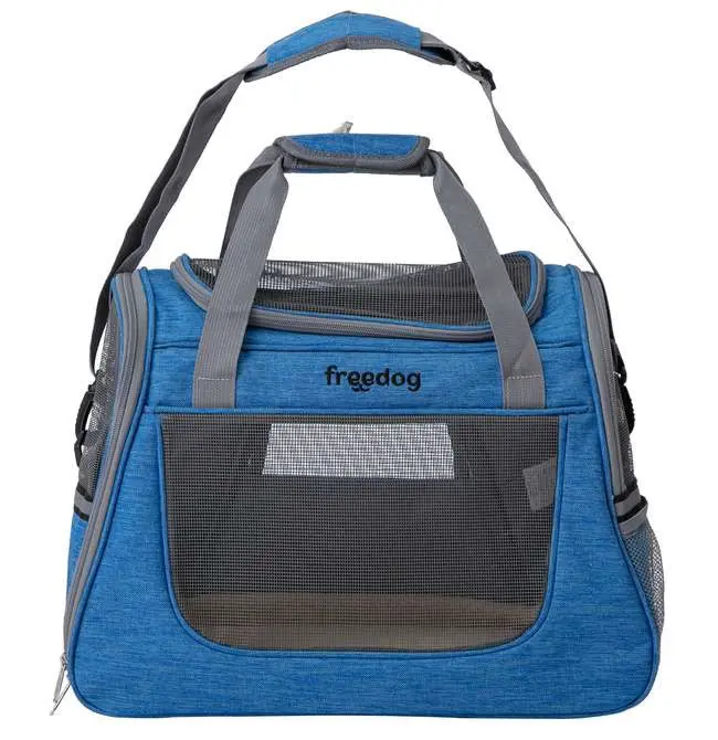 El transportín Freedog en color azul es un accesorio ideal y seguro para el transporte de tu mascota. Sus dimensiones son 45 cm de largo, 25 cm de ancho y 35 cm de alto (45x25x35 cm), ofreciendo un espacio cómodo. Fabricado con materiales resistentes, garantiza la protección y tranquilidad durante los desplazamientos. Es perfecto para viajes en coche, visitas al veterinario o cualquier trayecto corto. El diseño de la marca Freedog combina funcionalidad y durabilidad, convirtiéndolo en una opción práctica para dueños responsables.