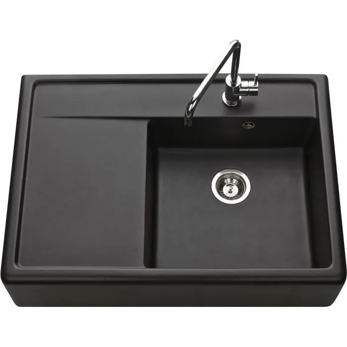 Fregadero sobre encimera Office Timbre - Granito - 1 lavabo 1 escurridor - 895x630 - Desagüe manual - Negro mate