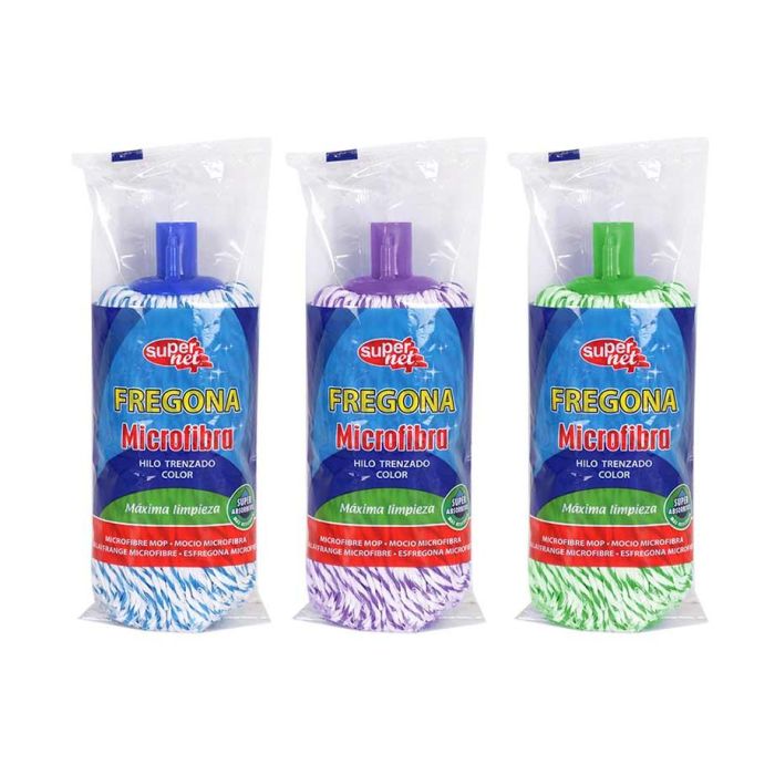 Supernet Fregona Hilo Trenzado Microfibra 150Gr, 12 cm ancho, 6 cm alto, 29 cm largo (12 Unidades)