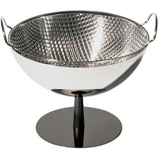 Diseñado por Achille Castiglioni el frutero escurridor está fabricado en Acero Inoxidable de alta calidad 18/10 , compuesto por un cesto perforado que realiza las funciones de escurridor y un soporte de 25 cm de diámetro en forma de cáliz.