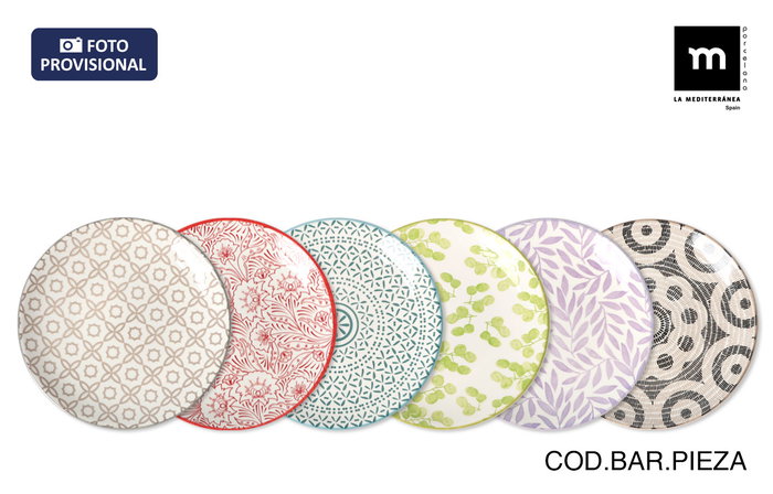 La Mediterranea Fuente Redonda Japo 20 cm Surtido 6 Decorados "Naoki" (18 Unidades)