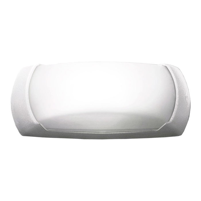 Aplique ovalado, modelo francy-op, color blanco con cristal translúcido, tensión 220 - 240 v ~50/60 hz, casquillo e27, máximo 23 w, longitud máxima bombilla 160 mm, bombilla no incluida, grado de protección ip66, hecho de resina resistente uv, anticorrosión y antióxido. incluye elementos de fijación. 300 x 85 x 130 mm