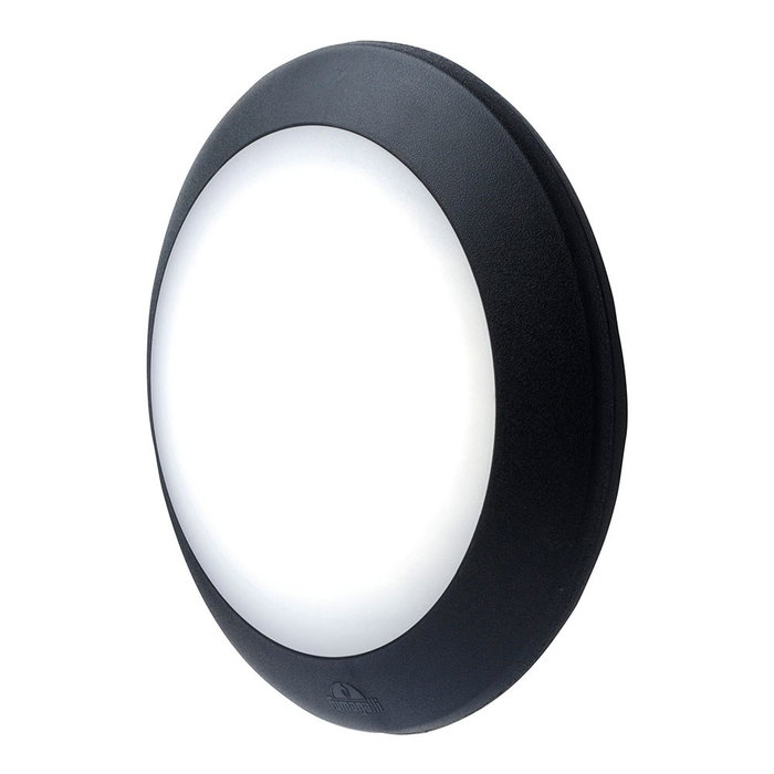 Plafón de superficie redondo, modelo berta, color negro con cristal translúcido, tensión 220 - 240 v ~50/60 hz, casquillo e27, máximo 23 w, longitud máxima bombilla 160 mm, bombilla no incluida, grado de protección ip66, hecho de resina resistente uv, anticorrosión y antióxido. incluye elementos de fijación. ø275 x 80 mm