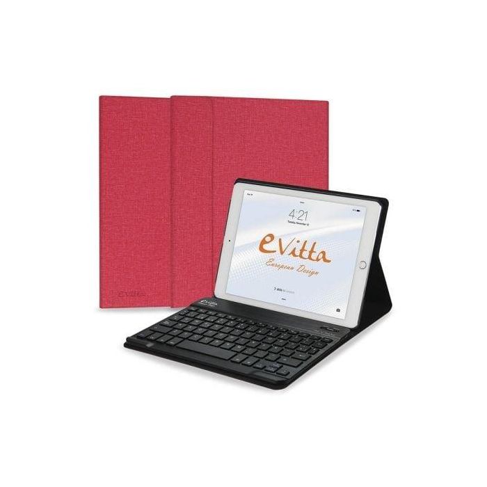 FUNDA CON TECLADO EXTRAIBLE E-VITTA KEYTAB BLUETOOTH ROJA PARA IPAD 2018 - POSICIÓN STAND - CIERRE PESTAÑA IMANTADA