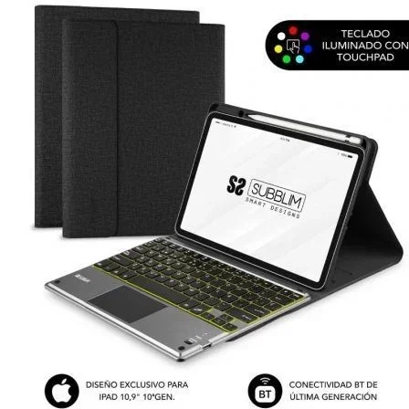 Funda con Teclado Retroiluminado KEYTAB Pro BT Touchpad Ipad 10,9' 10a Gen Negro