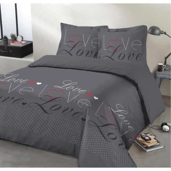 Funda Nórdica Vision Love 200 x 200 cm Gris
