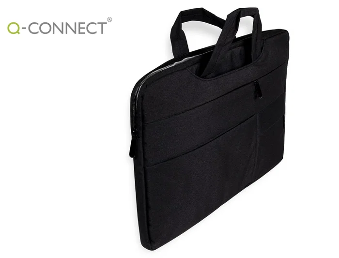 Q-connect Funda para portátil 15,6" con Asas Retráctiles, Cremallera, 3 Bolsillos Exteriores, Negro