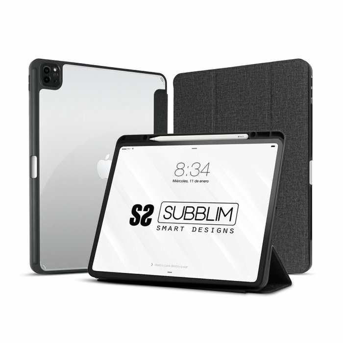 La funda para tablet Subblim SUBCST-5SC400 está concebida para ofrecer una protección avanzada y un diseño elegante a los usuarios de iPad Pro 11" (2ª, 3ª y 4ª generación) y iPad Air (4ª y 5ª generación), respondiendo a las necesidades más habituales de quienes buscan seguridad y funcionalidad en un mismo accesorio. Fabricada con una combinación de poliuretano y policarbonato de alta calidad, esta funda presenta una parte trasera semirrígida y transparente que protege el dispositivo frente a impactos y roces, manteniendo la estética original gracias a su acabado sobrio en color negro con detalles translúcidos. Incorpora la tecnología de absorción de golpes en bordes y esquinas, reforzando la resistencia ante caídas accidentales, mientras que su formato tipo portafolio proporciona cobertura total para pantalla y carcasa con un ajuste preciso, asegurando que los botones, puertos y cámara resulten completamente accesibles sin necesidad de retirar la funda. Pensada para el uso diario, incluye función atril con dos posiciones de apoyo, facilitando tanto la visualización de contenido multimedia como la escritura. Su cierre magnético garantiza un transporte seguro, evitando aperturas inesperadas y protegiendo la tableta en todo momento. Además, integra una ranura específica para Apple Pencil, permitiendo llevar el accesorio siempre a mano y resguardado. Gracias a su diseño inteligente y minimalista, la funda Subblim SUBCST-5SC400 combina protección avanzada, versatilidad y estilo discreto, posicionándose como una solución fiable para quienes buscan mantener su tablet en perfecto estado sin renunciar a la comodidad y elegancia en el uso cotidiano.