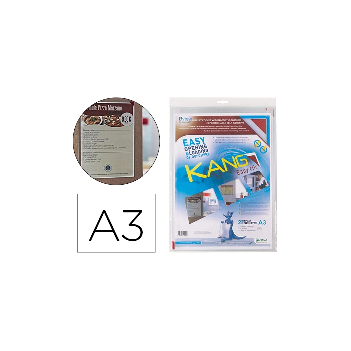 Djois Funda Presentación Adhesiva Removible DIN A3 Magnética, Capacidad 10 Hojas, 10x470x330mm