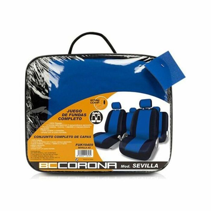FUK10409 Juego Completo Fundas Asientos Coche Universal Sevilla Azul | Para 5 Asientos, 11 Piezas, Compatible Airbag
