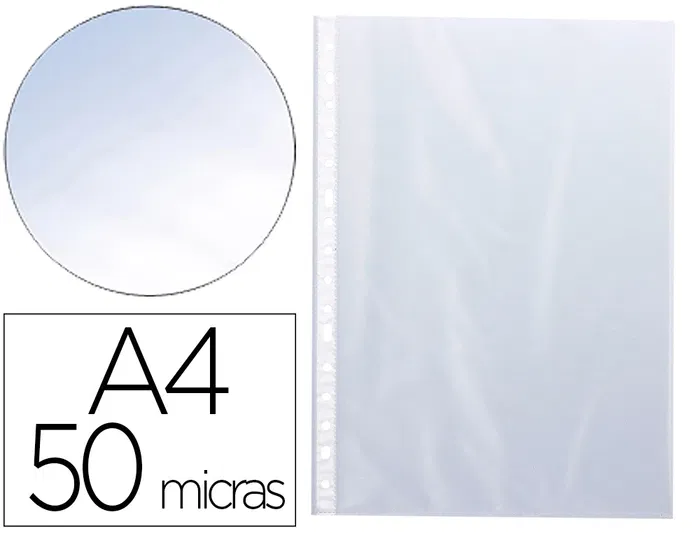 Para protección y archivo de documentos. Fabricada en polipropileno cristal. 11 taladros. Grosor: 50 micras. Formato DIN A4.