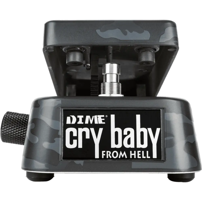 Dimebag Darrell combinaba la fanfarronería de un vaquero con riffs de alta ganancia y pistas cargadas de armónicos chirriantes. Uno de los elementos más significativos de su sonido y dinámica era el Cry Baby Wah, y en una época en la que los pedales de wah habían pasado de moda, Dime ondeaba su bandera de wah en lo más alto. Cargado de experiencia ganada a pulso y sus conocimientos de años de gira, Dime nos ayudó a idear el wah más versátil de nuestra línea: El Dime Cry Baby from Hell Wah. El trabajo en este pedal comenzó hace unos 20 años, cuando Dime, un viejo usuario del súper personalizable Cry Baby 535Q Multi-Wah, quería aún más libertad a la hora de configurar su equipo en el escenario. Empezando por el 535Q, hemos conservado su control Q, su selector de rango de 6 vías y su kick-in boost ajustable. A continuación, le hemos dotado de un amplio rango de barrido para que Dime pudiera profundizar aún más, un control para ajustar la frecuencia de bajada del pedal, una salida adicional para dividir la señal en una cadena de efectos separada y unos indicadores LED montados en la parte trasera para mostrar cómodamente tanto si el wah como el Boost está activado. Por último, hemos sustituido la banda de rodadura de goma estándar por una cinta antideslizante de monopatín para que tu pie no resbale bajo ningun concepto. El Dime Cry Baby from Hell Wah es el pedal de wah definitivo para tu equipo en gira, y con su nuevo acabado en camuflaje negro, te hará lucir como nadie.