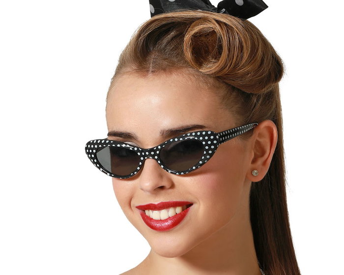 Gafas Negras Con Lunares Blancos Estilo Pin-Up Años 50 Para Disfraces Y Fiestas Vintage