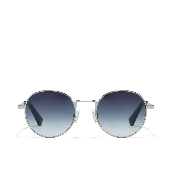Gafas de sol MOMA de Hawkers. Gafas de sol unisex para adultos con un diseño clásico y redondo. La montura es de metal en color Silver blue, que combina tonos azul y plateado. Sus dimensiones técnicas son: ancho de puente de 20 mm, calibre (diámetro del cristal) de 50 mm y patilla de 140 mm.
