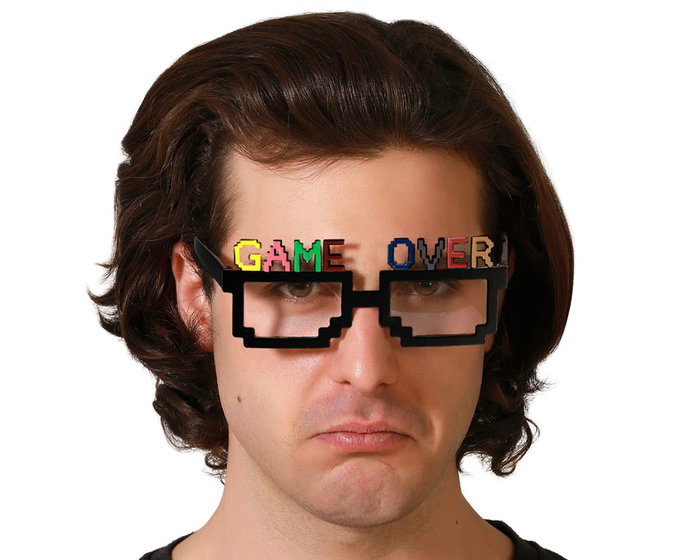 Estas gafas pixeladas con el texto "game over" son el complemento ideal para cualquier amante de los videojuegos. añade un toque friki y divertido a tu disfraz gamer, retro o geek. ideales para carnavales, ferias de ocio electrónico o eventos cosplay, donde marcarás la diferencia con estilo.