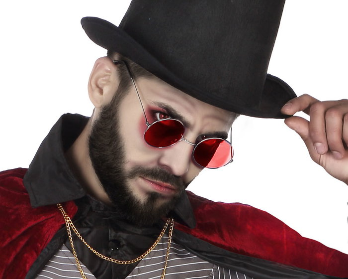 Estas gafas con lentes rojas intensas aportan un toque siniestro y seductor a cualquier disfraz de halloween. ideales para vampiros, demonios, criaturas nocturnas o personajes de película. su diseño redondo y metálico aporta realismo y fuerza visual al look.