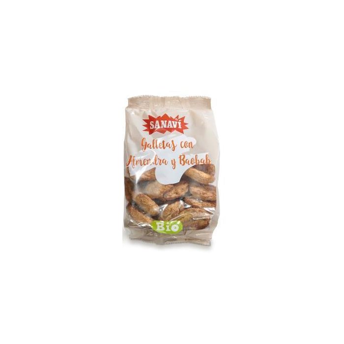 SANAVI Galleta con Almendra y Baobab Bio Vegan 250Gr. Fuente de fibra, muy bajo contenido en sal.