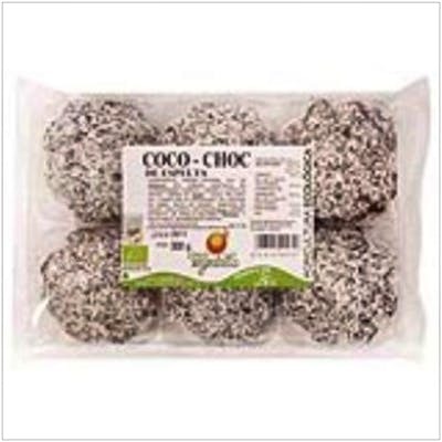 Composicion: Harina integral de espelta*, coco*, sirope de espelta*, licuado de soja*, grasa vegetal no hidrogenada*, huevos*, cobertura de chocolate*, azúcar de caña*, bicarbonato sódico. Valor nutricional por 100 g: Valor energético:2001KJ/480Kcal Grasas:8 g Hidratos de carbono:56.1 g Fibras:6.8 g Proteínas:8 g (*)= De agricultura ecológica.