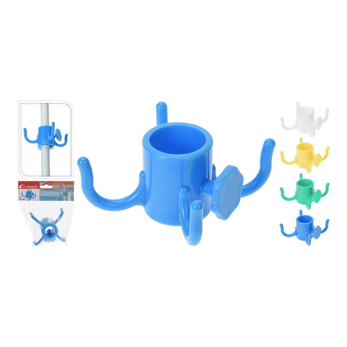 Gancho para sombrilla 4 colores surtidos para postes de ø19 a 32mm. peso: 41g. 4 colores: blanco, azul, amarillo y verde. material: polipropileno colores / modelos surtidos