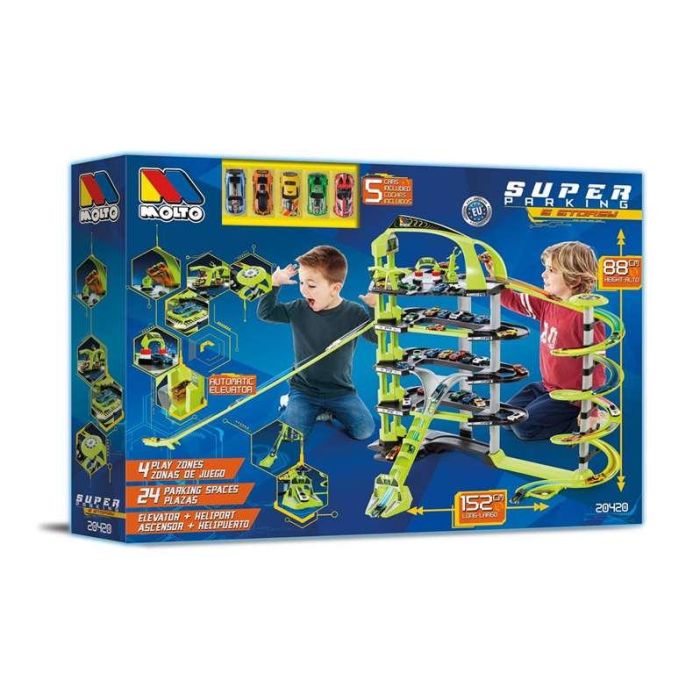 Molto Parking 5 plantas 152 cm de largo incluye 5 coches para niños a partir de 3 años