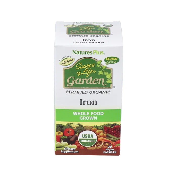 NATURES PLUS Hierro 30 Cápsulas - Complemento alimenticio de hierro natural para energía y sistema inmunitario, apto veganos y embarazadas