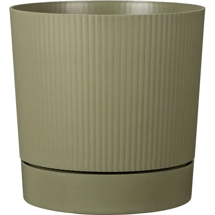 GARDEN ID Maceta redonda con depósito, Lino, color verde musgo, Ø 47 cm, capacidad 43 L, altura 46 cm - 2044814