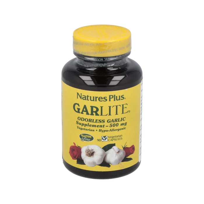 NATURES PLUS Garlite 90Vegicaps - Complemento de ajo envejecido para reducir colesterol y triglicéridos, apto para vegetarianos