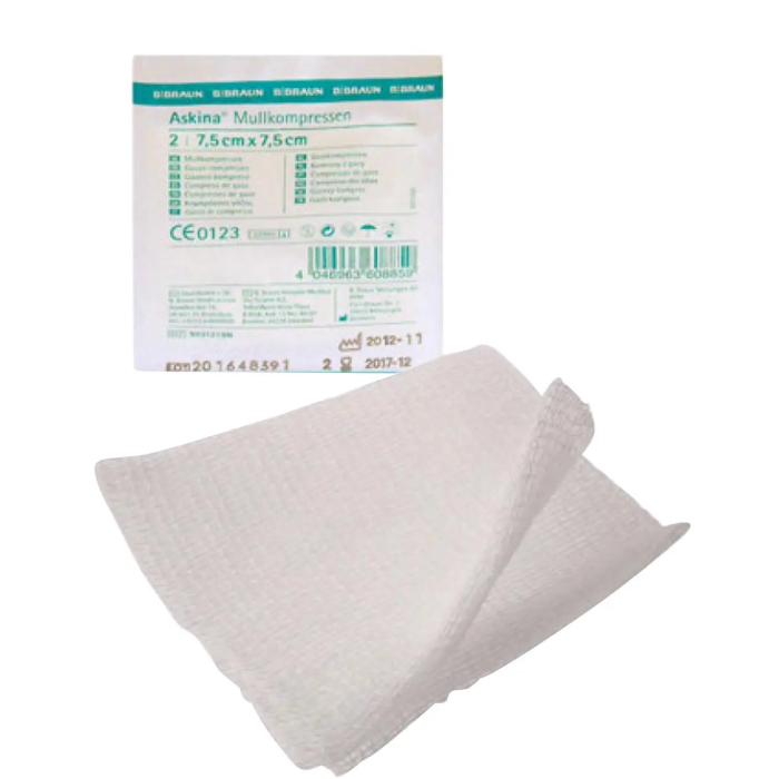 Compresas de gasa estériles, presentadas en sobres individuales para garantizar su máxima higiene y seguridad.