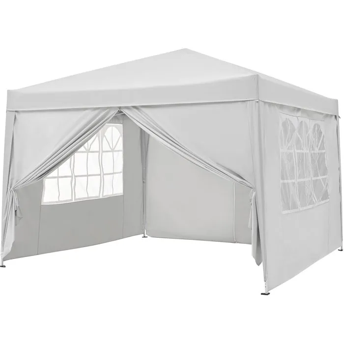 Cenador plegable de jardín - Estructura blanca y lona color crudo - 3 x 3 m - 4 lados - Bolsa de transporte