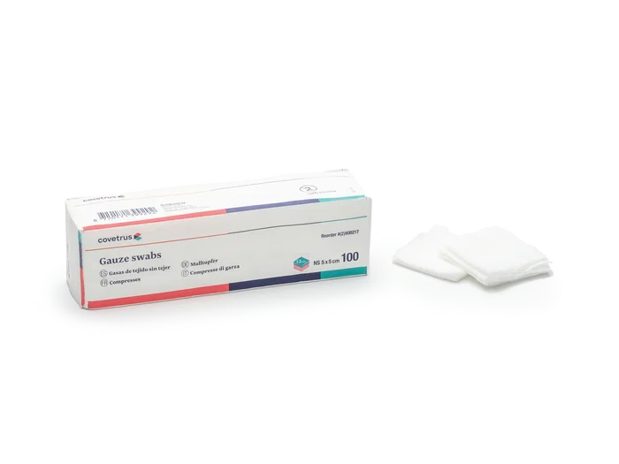 Hisopos de gasa Covetrus de alta calidad. Características: diseño altamente absorbente, no estériles, con borde plegado para mayor seguridad. Tamaño: 5 cm x 5 cm. Estructura: 12 capas (12-ply). Especificaciones del tejido: 40 hilos en urdimbre y trama (40s40s), con una densidad de 26 hilos por pulgada en urdimbre y 18 en trama. También equivale a una densidad de 70 +/- 4 hilos por cada 10 cm en urdimbre y 100 +/- 5 hilos por cada 10 cm en trama, con un total de 17 hilos. Contenido del paquete: 100 unidades.