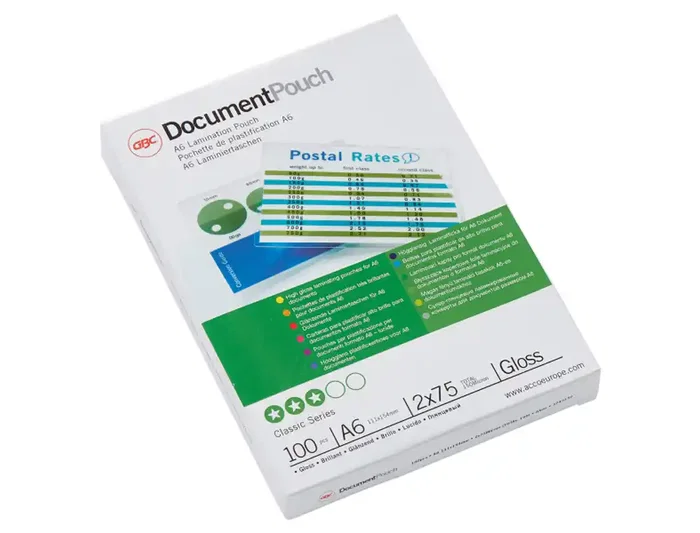 Una solución práctica y de uso cotidiano para proteger y mejorar las páginas más valiosas de presentaciones, listas de referencia, fichas de producto, avisos, etc. 2 x 75 micras, con brillo. Formato A6. Tamaño del paquete: 100.
