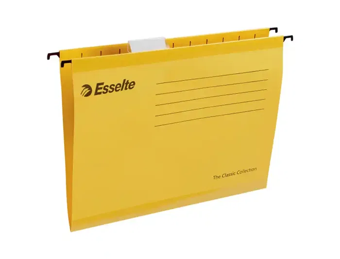 Carpeta colgante esselte din a4 cartulina 210 g/m2 visor superior lomo v color amarillo caja de 25 unidades